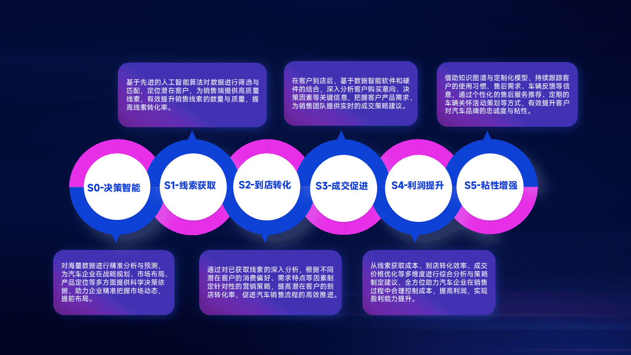 通过拓宽潜在客户来源、、优化线索分配并提高到店转化率,,,,以增强销售效率。。。同时,,,,利用线索数据不断优化分析模型,,,,有效提升转化率,,,扩大营销影响力。。。。